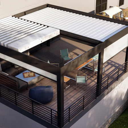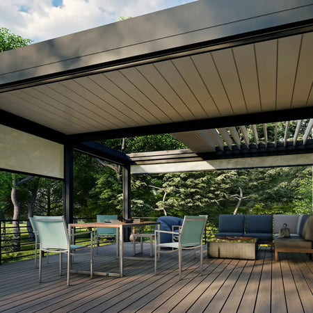 Rinova Pergolas combine precision-engineered aluminum with a minimalist profile that suits any setting. Each build is measured to fit, with integrated water management, smooth louver motion, and low-maintenance finishes. Add perimeter LEDs, privacy screens, and smart controls to create a space that works day and night.