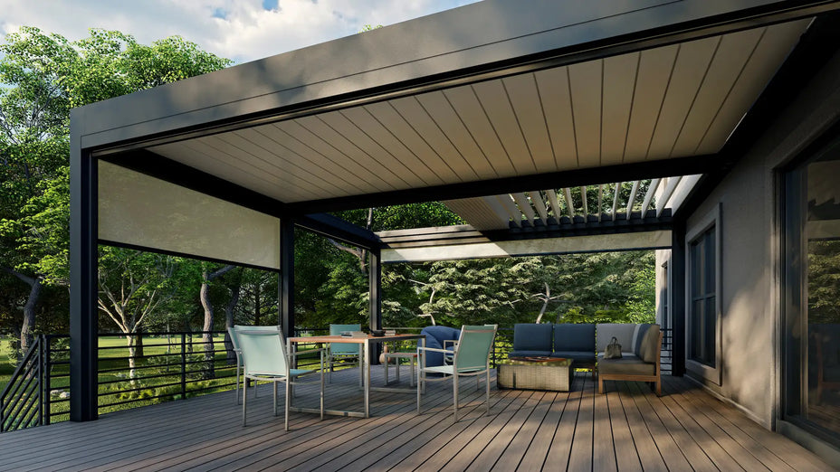 Pick your footprint, post placement, and louver style. Our systems include hidden guttering, wind-tested structure, and corrosion-resistant finishes that keep their color. Add options like heaters, ZIP screens, and motion-quiet motors — all tuned for Canadian weather.